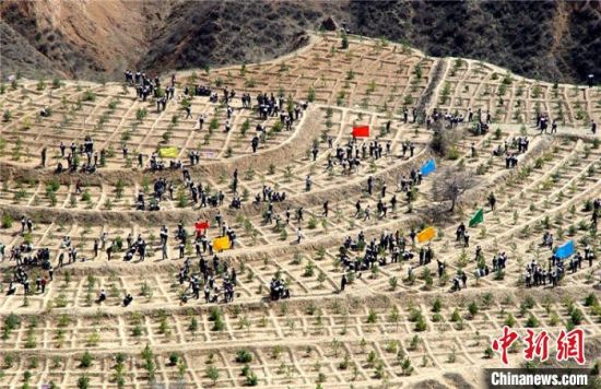 慶陽市西峰城區(qū)職工春季義務植樹現(xiàn)場。 (資料圖) 徐亞東 攝