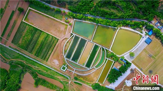 5月20日,慶陽市正寧縣永正鄉(xiāng)佛堂村永誠田園綜合體建設點,一座座涼亭、客棧相映成趣,一口口標準化魚塘碧波蕩漾,民眾在田園務工,游客在休閑垂釣,構成了一幅清新秀麗的水上圖畫。 陳飛 攝