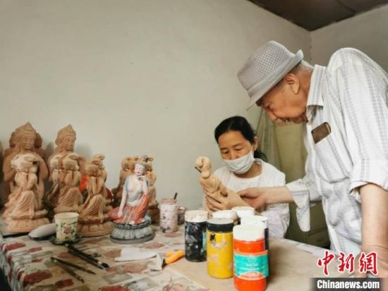 中新網(wǎng)蘭州9月2日電 (閆姣 馮志軍 高瑩)八旬敦煌彩塑藝人魯勤學,耗時四十余載摸索敦煌彩塑的制作工藝,他還創(chuàng)新“立體”壁畫,將壁畫中的佛像形象都制作成了便于游客攜帶的彩塑。“我特別想通過自己微薄的力量把家鄉(xiāng)推介出去,想讓大家都知道敦煌彩塑的魅力。”他說。