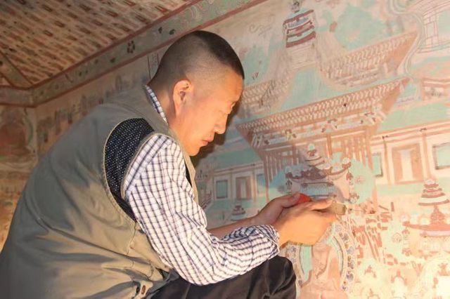 1990年,李云鶴的兒子李波同樣成為了敦煌研究院的文物修復(fù)師。對于生于敦煌、長于敦煌的李波而言,回到敦煌修壁畫是一件再自然不過的事情,“家里有一位修壁畫的父親,這對我的影響是極大的。而且這里是我的故鄉(xiāng),我對敦煌對莫高窟,有感情也有責(zé)任。”