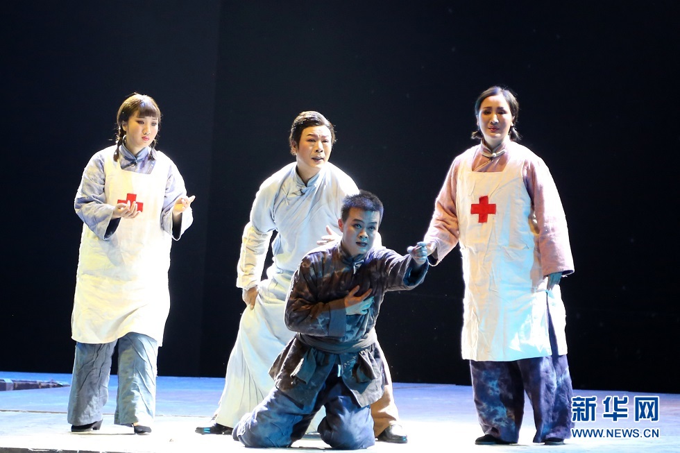 5月30日晚,大型秦腔現(xiàn)代戲《肝膽祁連》在蘭州音樂廳精彩上演。《肝膽祁連》以真實(shí)的歷史故事改編,講述了愛國民主人士高金城營救紅西路軍戰(zhàn)士的感人故事。新華網(wǎng)發(fā)(王晶晶 攝)