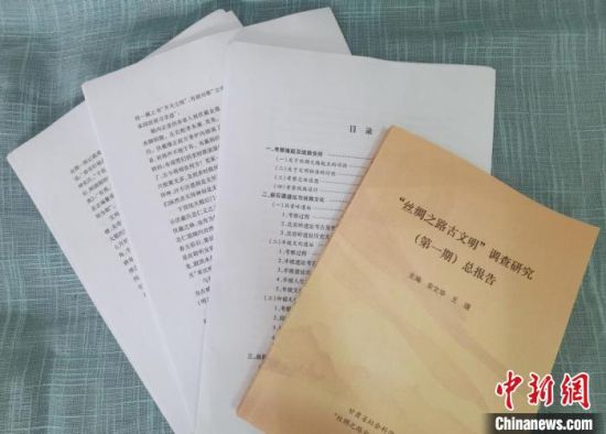 7月下旬,甘肅省社會科學(xué)院工作人員展示《絲綢之路古文明》第一階段考察報告打印版?!¢Z姣 攝