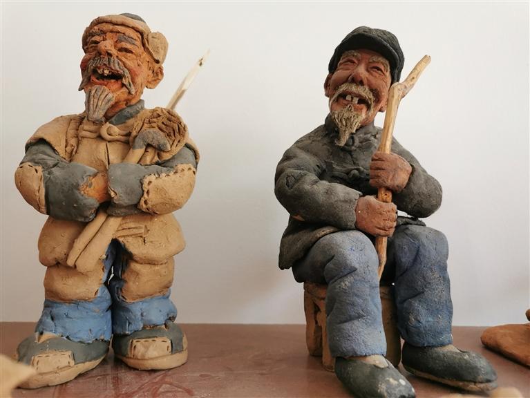 記者環(huán)顧四周,只見滿臉堆笑的“老頭老太”、活潑可愛的“牧童”、陽光清純的“少先隊(duì)員”等泥塑作品形象鮮活生動(dòng),依次有序地?cái)[放在展架上。