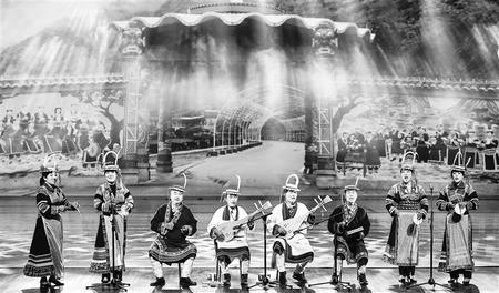 除了家族傳承還有師徒傳承。展演中,72歲的瑪曲龍頭琴國(guó)家級(jí)非遺傳承人華爾貢和徒弟們一起登臺(tái)演出,他們明快地彈唱,仿佛把觀眾帶到遼闊的草原上。