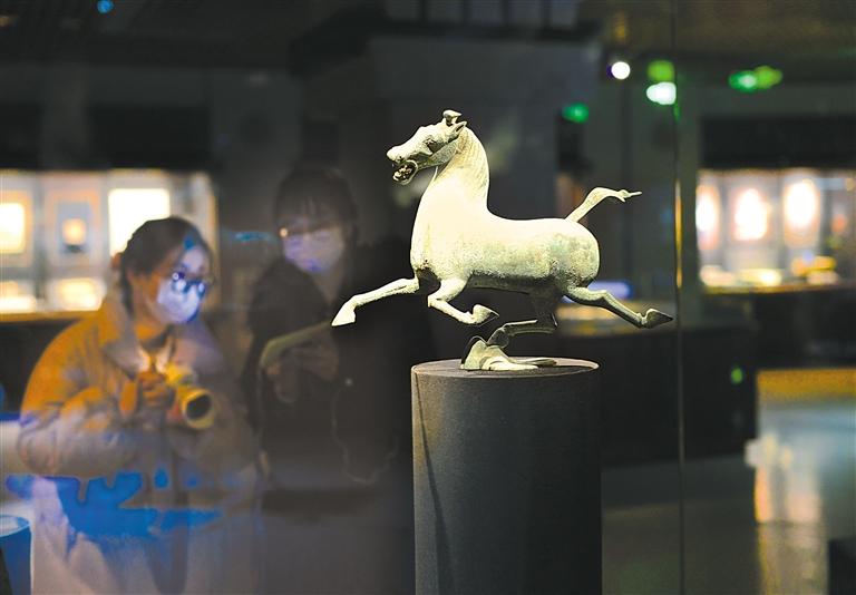 這是觀眾在甘肅省博物館銅奔馬等展區(qū)參觀。 奔流新聞·蘭州晨報(bào)記者 裴強(qiáng) 攝
