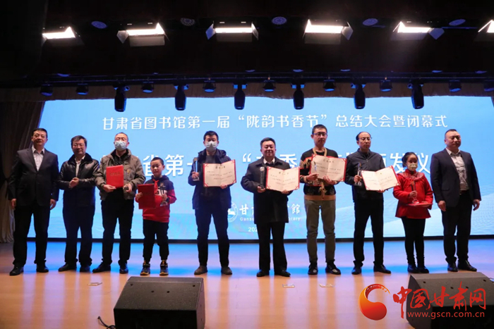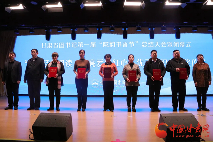 中國甘肅網(wǎng)12月28日訊(本網(wǎng)記者 張?zhí)m琴 通訊員 吳鵬)12月27日,歷時8個月的甘肅省圖書館第一屆隴韻書香節(jié)圓滿落幕。閉幕儀式上播放了第一屆“隴韻書香節(jié)”活動總結短片和書香家庭宣傳短片,公布了“隴韻書香節(jié)”形象標識(LOGO)方案,并為“甘肅省第一屆書香家庭”獲得者、“紅色經(jīng)典閱讀  點亮愛黨紅心”活動獲獎者頒獎。