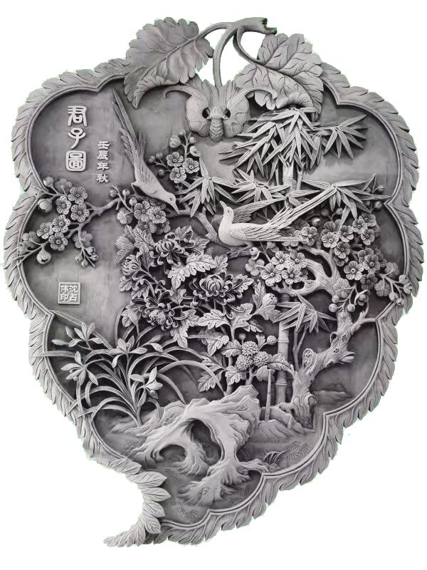 端詳沈占偉的作品,有栩栩如生的花鳥,大氣磅礴的山川,活靈活現(xiàn)的人物,能想到的體裁應(yīng)有盡有。可以說遠(yuǎn)看端莊大氣,近看細(xì)節(jié)精湛,尤其是對(duì)動(dòng)植物的刻畫,仿佛通過他的刻刀賦予了生命,在原本冰冷的磚塊上呼之欲出,生機(jī)勃勃。難能可貴的是,他并不會(huì)限制自己的創(chuàng)作體裁,每一幅作品都是匠心之作,都傾盡了他的心血。