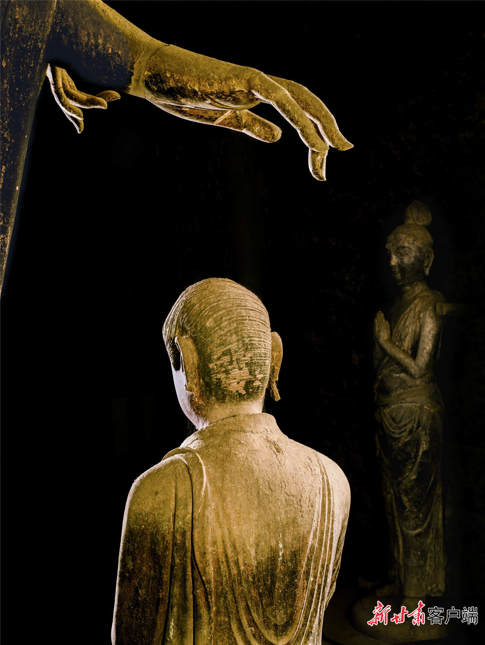 頭腦接受到太多沖擊后,吳健跳出敦煌再看敦煌藝術。他想,雕塑原來應該這么拍!那些雕塑的原型是活生生的人啊,應該跟人像拍攝結合起來。“攝影不同于照相,而是用光去繪畫。”