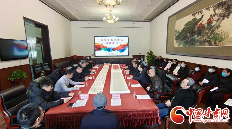 中國(guó)甘肅網(wǎng)2月22日訊(本網(wǎng)記者 任磊 楊顏如)22日上午,鄭國(guó)斌書法作品捐贈(zèng)儀式在甘肅省博物館舉行,鄭國(guó)斌先生向省博物館捐贈(zèng)了近20年來創(chuàng)作的10件書法精品。