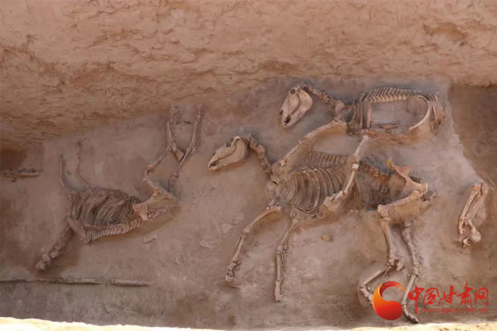 2021年,考古項(xiàng)目組對(duì)新發(fā)現(xiàn)的天祝縣祁連鎮(zhèn)長嶺-馬場(chǎng)灘區(qū)3座墓葬進(jìn)行了考古發(fā)掘,發(fā)掘面積600平方米。3座墓葬均為帶斜坡墓道的單室磚室墓,其中馬場(chǎng)灘M1還附帶一側(cè)室,甚為獨(dú)特。墓道內(nèi)均殉有整馬,1-3匹不等,墓室均遭盜掘,頂部坍塌,北側(cè)設(shè)磚砌棺床,共出土各類文物290余件。