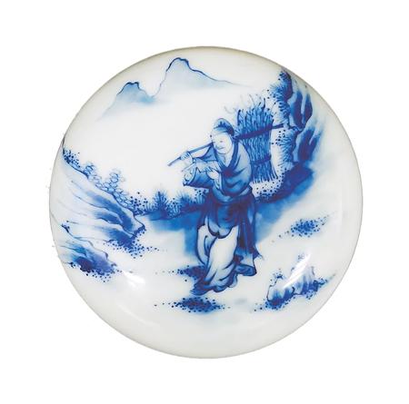 樵夫讀書青花印泥盒