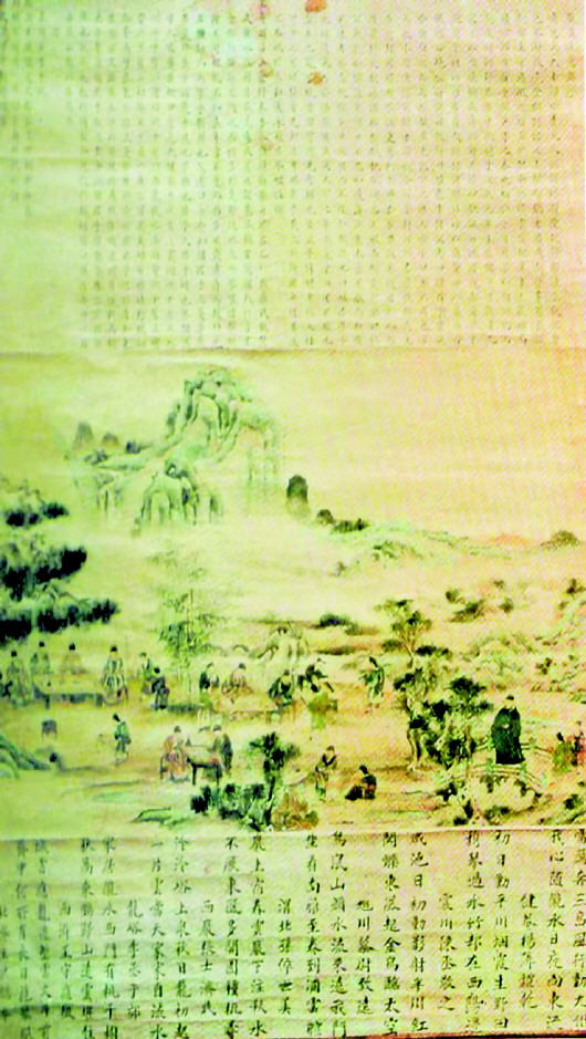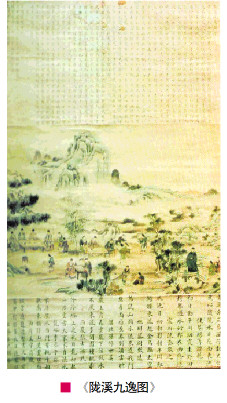 “隴溪九逸”每逢集會(huì),必懸此圖。他們繼承中國文人優(yōu)良的傳統(tǒng)美德,“居廟堂之高則憂其民,處江湖之遠(yuǎn)則憂其君”,看似醉情山水,實(shí)則壯心不已,制訂鄉(xiāng)約,設(shè)館授徒,為家鄉(xiāng)的文化教育事業(yè)發(fā)揮著余熱。從這個(gè)意義上說,明代秦安“隴溪九逸”正是古代知識(shí)分子憂國憂民的一個(gè)縮影,亦是那個(gè)時(shí)代的一抹春色。
