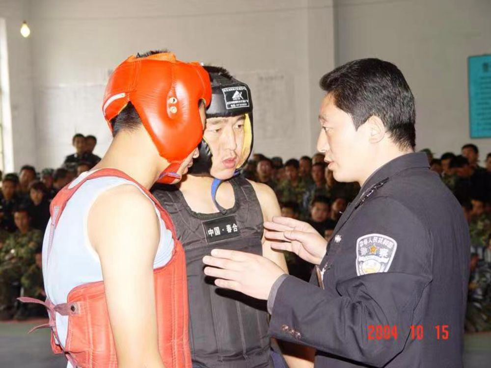 孔子曰:“用文事者、必有武備”。張飛虎從小就踐行了這樣的箴言。文事方面:1987年能考入西北師范大學(xué),可謂鳳毛麟角,在31年的執(zhí)教生涯中,他先后出版《中國警察擒敵制勝技術(shù)》《通備警用擒敵拳》《通備反暴恐制勝棍》《維穩(wěn)中國》等專著4部,主編了通備武學(xué)文集——《文心止戈集》和《高職體育與健康》、《警察體能訓(xùn)練教程》等教材10余部,發(fā)表論文60余篇。詩文無數(shù),且原創(chuàng)歌曲《通備萬古情》和《心中的胡楊》,尤其后者寫得蒼茫遒勁、寂寞堅強。今年4月,張飛虎將2021年新修訂的《公安機關(guān)人民警察內(nèi)務(wù)條令》17章232條創(chuàng)編成“《內(nèi)務(wù)條令》五字口訣”,以口訣的形式對條令內(nèi)容進行了凝練和概括,方式新穎、內(nèi)容全面、朗朗上口,便于記憶,屬全國首創(chuàng)。這里只是列舉二三,便可見微知著。武備方面:1987 年,張飛虎在大學(xué)一年級就以劈掛拳、搜林棍的突出表現(xiàn)而躋身于西北師范大學(xué)武術(shù)隊并擔(dān)任隊長。1990 年大學(xué)四年級實習(xí)時,就在武威師范拉起 98 人的武術(shù)隊,心靈手巧的女弟子繡了一面刺有“飛虎隊”的大旗,從此,“飛虎隊”橫空出世。1991年,張飛虎到甘肅省人民警察學(xué)校任教后,組建警校武術(shù)隊——“飛虎隊”,成功地將通備等傳統(tǒng)武術(shù)傳到了警營,且代有人才。目前,甘肅警界飛虎隊員多為業(yè)務(wù)骨干、砥柱中流。1993年,參加河南陳家溝舉辦的全國“武術(shù)之鄉(xiāng)”武術(shù)散打比賽,位居第二,父兄皆有斬獲,其父被國家體育總局評為“中華武林百杰”。其后,與其兄張飛鵬聯(lián)袂在《甘肅公安》雜志上專辟《招招制敵》欄目,推介通備實用擒拿招法,每周一期,歷 8 載 168 期,有力地推廣了通備武學(xué)等傳統(tǒng)武術(shù)。他將技擊放在首位,“一招制敵”理念為公安民警提供了訓(xùn)練范本和擒敵指南。新世紀以來,張飛虎及父兄將傳統(tǒng)武術(shù)推出國門,走向世界。2009 年 5 月法國國防部致函邀請張飛虎赴法講學(xué),給法國特警(CS)著重傳授了為期一月的《警察干預(yù)技術(shù)》和通備實用招法,取得圓滿成功,同時他本人被法國理工大學(xué)聘請為客座教授。2012年被評為甘肅省第七屆高校教學(xué)名師;2015年被評為甘肅省警務(wù)實戰(zhàn)技能教學(xué)訓(xùn)練團隊帶頭人,2018年被推為“國際武道聯(lián)合會副主席”,2019年榮立甘肅省公安機關(guān)“人才警務(wù)工程”三等功,2021年被評為“全國公安優(yōu)秀教師”。