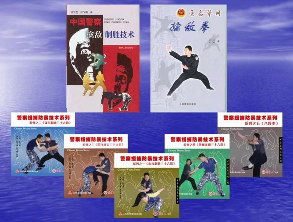 張飛虎在習(xí)武之余,學(xué)術(shù)上也一路精進,展現(xiàn)了他學(xué)文的天賦,他不但是警院教授,還曾是警院學(xué)報副主編,除了先后出版的4部學(xué)術(shù)專著外,還錄制了“警察緝捕防暴技術(shù)”系列教學(xué)光碟,在國內(nèi)外發(fā)行,并有一項科研成果申報為國家專利。一位武術(shù)名家,在學(xué)術(shù)上有如此驕人的成就,實屬不易。治學(xué)之余,張飛虎還分別在《甘肅公安》和《蘭州公安》雜志上創(chuàng)辦并主持《招招制敵》與《實戰(zhàn)練兵》欄目,解說并實戰(zhàn)演練制敵招法。專著《中國警察擒敵制勝技術(shù)》一書2010年被公安部評為“全國公安機關(guān)優(yōu)秀培訓(xùn)教材”,書中首次提出了“軍隊擒敵技術(shù)和警察擒敵技術(shù)相殊差別”的觀點,并對擒敵技術(shù)的每一招法進行了生理學(xué)、生物力學(xué)的分析,從而科學(xué)地將擒敵術(shù)上升到一個新的理論與實戰(zhàn)融通的高度。更為可貴的是,《中國警察制勝技術(shù)》將法律精神融入其中,使招法的運用有了法律依據(jù),盡顯法制社會的時代精神,也與文明社會的要求不謀而合,將警察擒敵技術(shù)與實用法律無縫銜接。針對警察沿襲軍隊擒敵拳無主體身份特點之不足,創(chuàng)編了首套以警察擒敵技術(shù)為主體內(nèi)容的擒敵拳——《通備警用擒敵拳》,填補了公安機關(guān)無警用擒敵拳的空白。2021年,作為建黨100周年的獻禮,張飛虎與其摯友張勇先生聯(lián)袂出版《維穩(wěn)中國》,為國家反恐維穩(wěn)工作貢獻了綿薄之力。