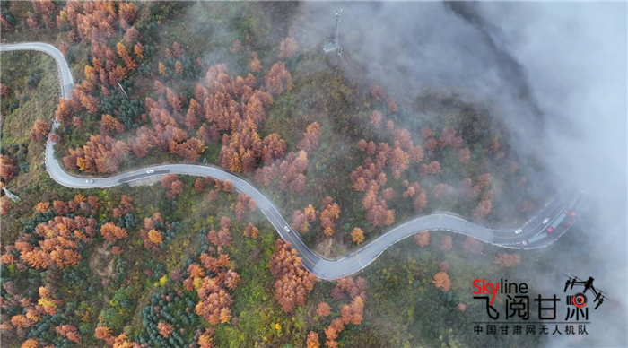 “一年好景君須記,最是橙黃橘綠時。”在初冬遇見深秋。隴南文縣的高樓山依然色彩斑斕,驅(qū)車沿著蜿蜒山路前行,目之所及皆是秋日童話世界。從空中俯瞰,公路更是在斑斕的林海中延伸,在薄霧籠罩中遇見遠方。