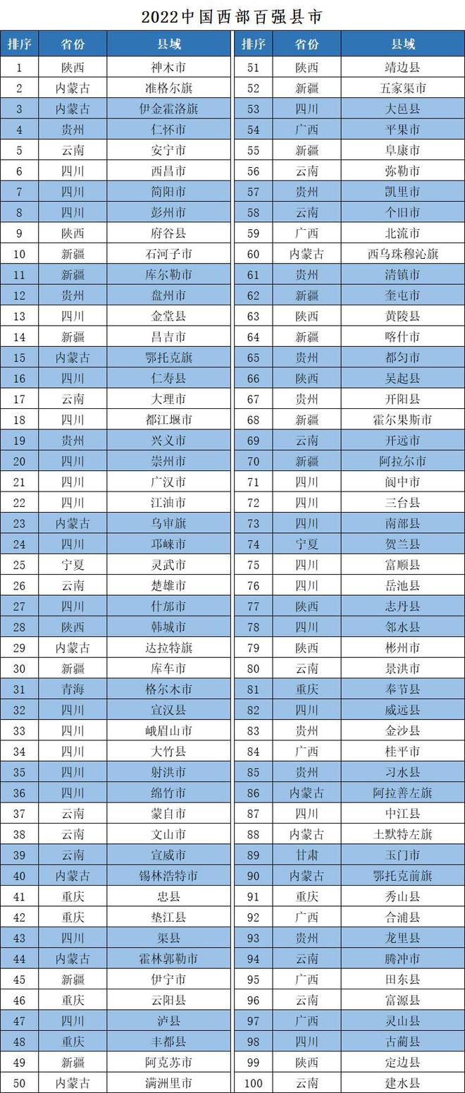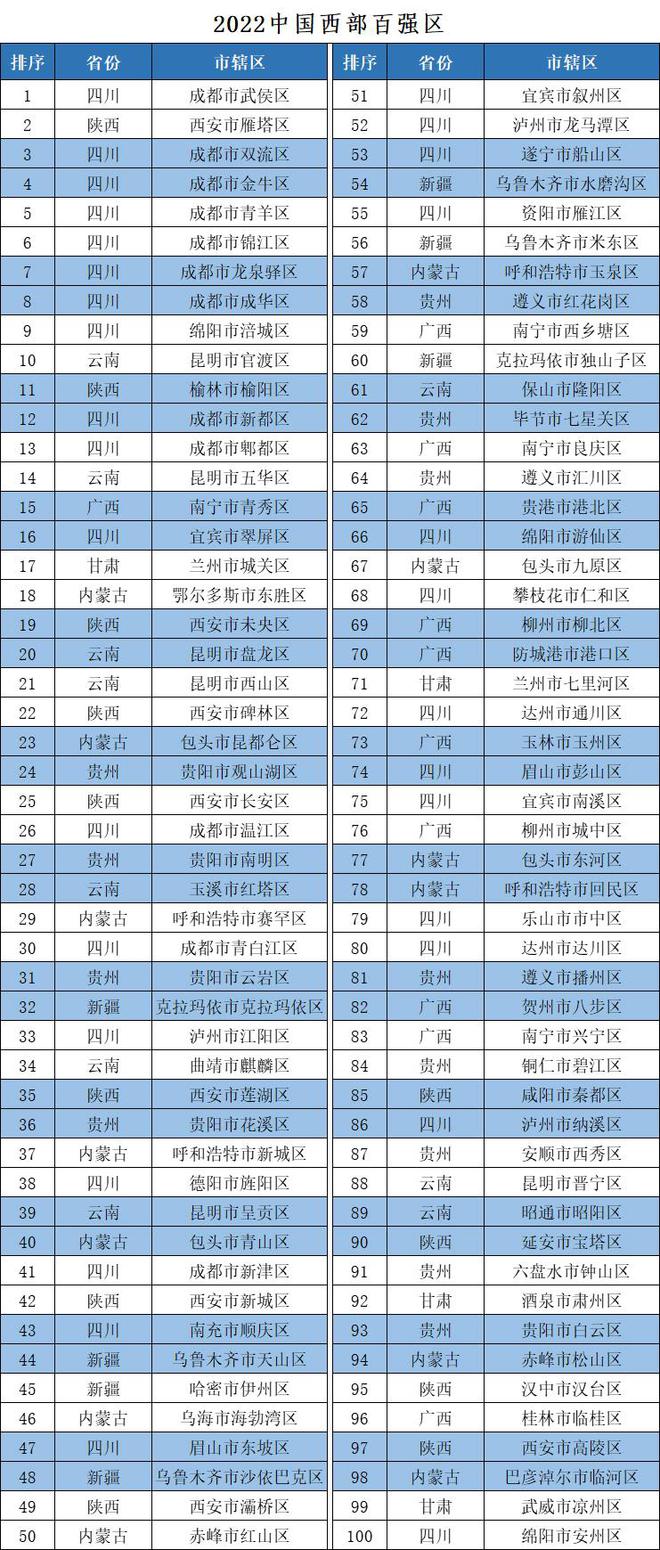 2022中國西部百強縣市區(qū)榜單發(fā)布 甘肅一市四區(qū)上榜