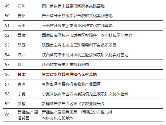 農(nóng)耕文化實(shí)踐營(yíng)地推薦名單(第一批)