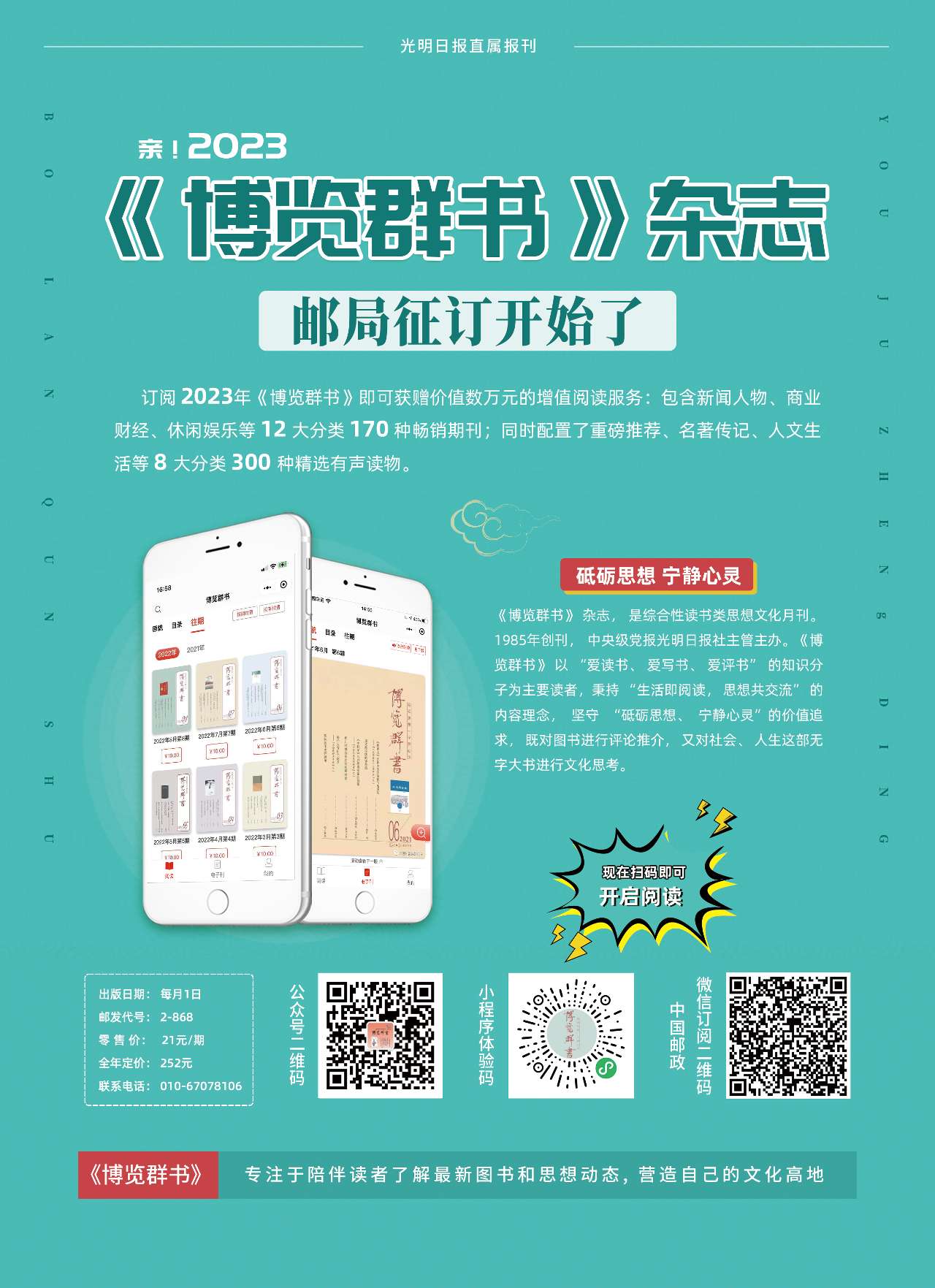 (由北京市報刊發(fā)行局青年團(tuán)隊(duì)設(shè)計的《博覽群書》2023年征訂廣告,點(diǎn)擊最后一個二維碼即可完成訂閱)