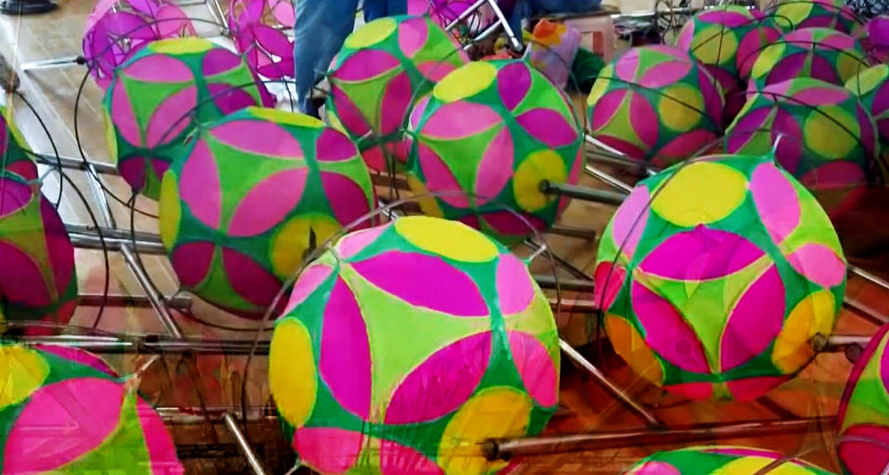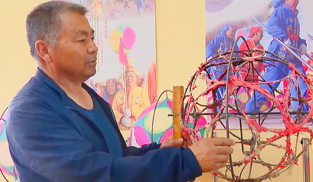 張安邦今年65歲,自其太祖輩起,代代都是技藝嫻熟的滾燈人,到他手里已經是第三代了。明清時的滾燈,燈架、燈盤、轉軸都是木制的,花燈是用竹條或柳條編織,解放前改成了羅圈骨架,而現在經過他改良的景泰滾燈,則是用高碳鋼絲制作而成。