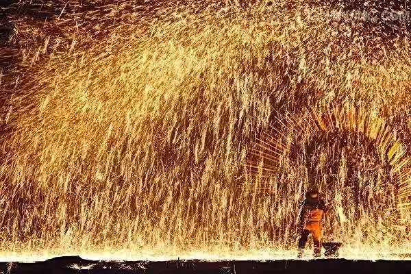 傳統“打鐵花”以老風匣、小融鐵爐、耐火罐、陶勺、耐火鍋、木板等為工具;以生鐵、焦炭、木屑為原料,利用木板擊打熾熱的鐵液和木屑混合物,打出一朵朵千姿百態(tài)、爭奇斗艷、精彩紛呈、絢麗奪目的“鐵花”,由于其顏色吉祥,寓意美好,因此,農村都喜歡通過“打鐵花”來祈盼來年風調雨順,國泰民安。