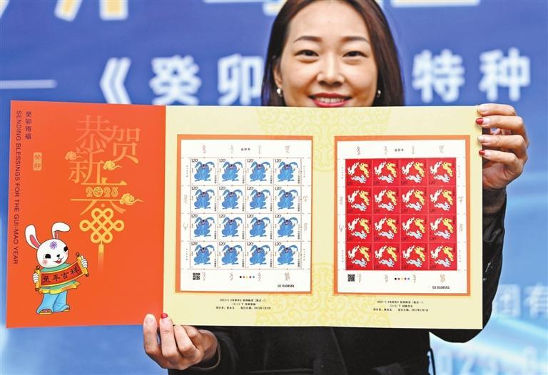 中國甘肅網(wǎng)1月6日訊 據(jù)蘭州晨報報道(奔流新聞·蘭州晨報記者王思璇)1月5日,中國郵政發(fā)行《癸卯年》特種郵票1套2枚,圖案內(nèi)容分別為:癸卯寄福、同圓共生,這套特種票是中國生肖郵票第四輪中的第八套。同日,《癸卯年》特種郵票在蘭州市各集郵營業(yè)網(wǎng)點發(fā)售。