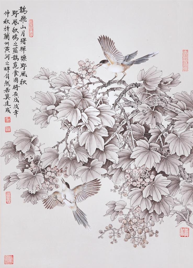 莫建成、莫曉松的花鳥畫藝術(shù)是在隴原大地的文脈浸染和敦煌藝術(shù)的熏陶滋養(yǎng)下,上下求索、靈苗自探的結(jié)晶,以其獨(dú)特的畫風(fēng),成為西北畫壇上一道亮麗的景觀。此次展覽展出兩位藝術(shù)家傾情創(chuàng)作的100多幅精品力作,將傳統(tǒng)積淀與時代審美相連接,實(shí)現(xiàn)了自然景觀與人文意象有機(jī)融合,展現(xiàn)了對西北大地的情愫、對優(yōu)秀傳統(tǒng)文化的重尋,體現(xiàn)出藝術(shù)家致力于中國“工筆花鳥畫傳承與發(fā)展”的深度思考與實(shí)踐。本版特選登其中部分作品,以饗讀者。——編者