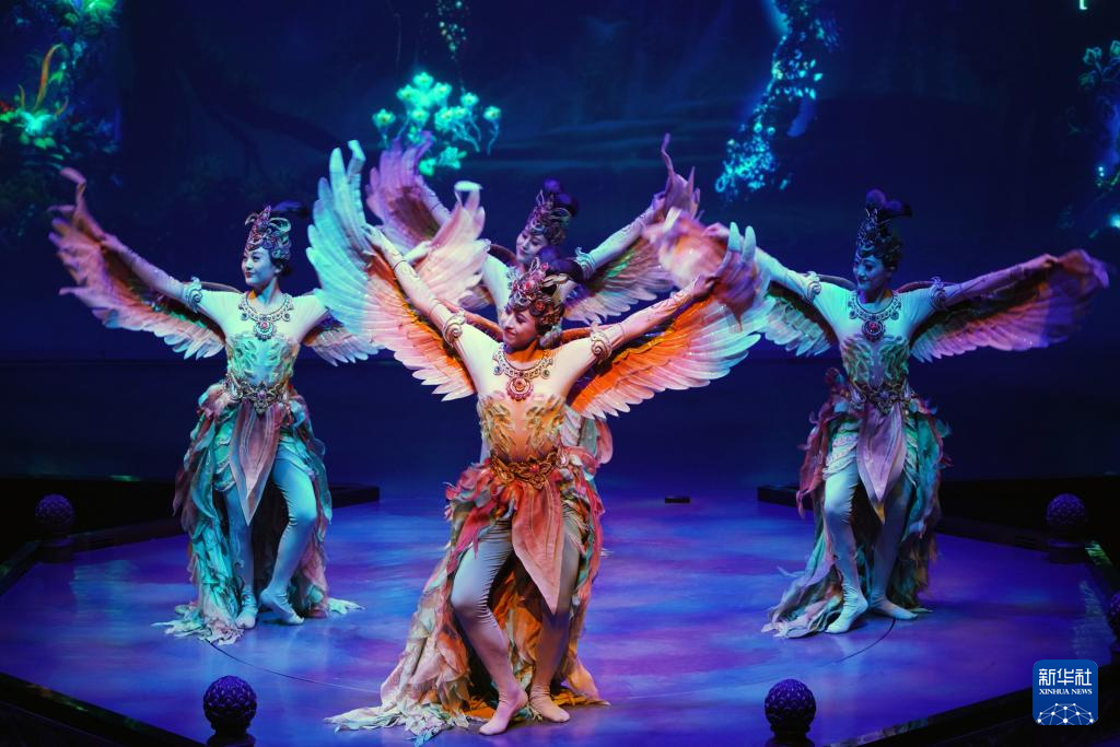 今年以來,脫胎于敦煌文化的洞窟沉浸式體驗劇《樂動敦煌》、室內(nèi)情景體驗劇《又見敦煌》、沙漠實景演出《敦煌盛典》和中國殘疾人藝術(shù)團情景音畫劇《千手千眼》四場劇目在絲路名城甘肅敦煌同步上演,劇目將敦煌歷史底蘊、服飾文化、樂舞文化等生動融合,為游客呈現(xiàn)出精彩絕倫的敦煌文化視覺盛宴,深受中外游客喜愛。截至8月10日,四大劇目今年已累計演出1175場次,觀看游客突破66萬人次。其中,《樂動敦煌》演出借助洞窟式實景移動舞臺和全息投影等技術(shù),還原了敦煌壁畫中的樂舞盛景,講述了西域少年白歆苦苦追尋并最終在敦煌樂舞壁畫中領(lǐng)略到音樂真諦的故事,觀眾在可游走、互動的沉浸式洞窟劇場內(nèi),零距離感受敦煌藝術(shù)中詩、舞、音、畫的璀璨繁盛。