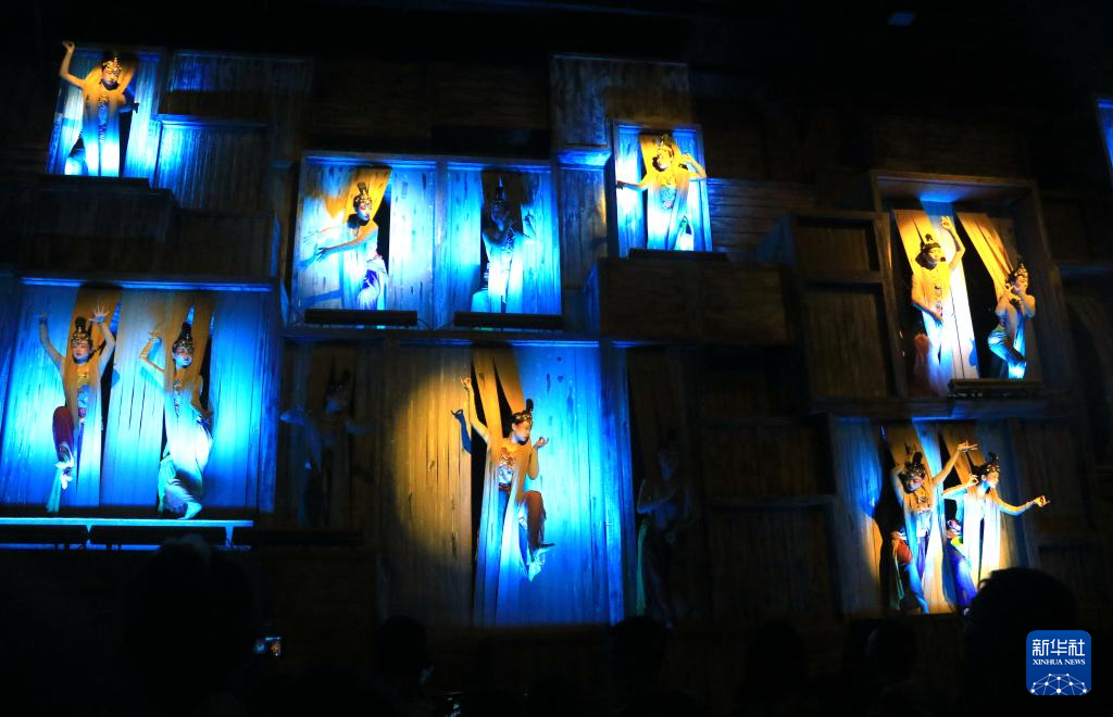 今年以來,脫胎于敦煌文化的洞窟沉浸式體驗劇《樂動敦煌》、室內(nèi)情景體驗劇《又見敦煌》、沙漠實景演出《敦煌盛典》和中國殘疾人藝術(shù)團情景音畫劇《千手千眼》四場劇目在絲路名城甘肅敦煌同步上演,劇目將敦煌歷史底蘊、服飾文化、樂舞文化等生動融合,為游客呈現(xiàn)出精彩絕倫的敦煌文化視覺盛宴,深受中外游客喜愛。截至8月10日,四大劇目今年已累計演出1175場次,觀看游客突破66萬人次。其中,《又見敦煌》從敦煌悠久的歷史文化中選取典型場景、線索人物,串起劇情的故事脈絡(luò),采用“流線式”空間體驗方式演出,讓觀眾在演出中步行“穿越”藏經(jīng)洞、莫高窟以及絲綢之路,身臨其境感受敦煌文化和絲路文化。