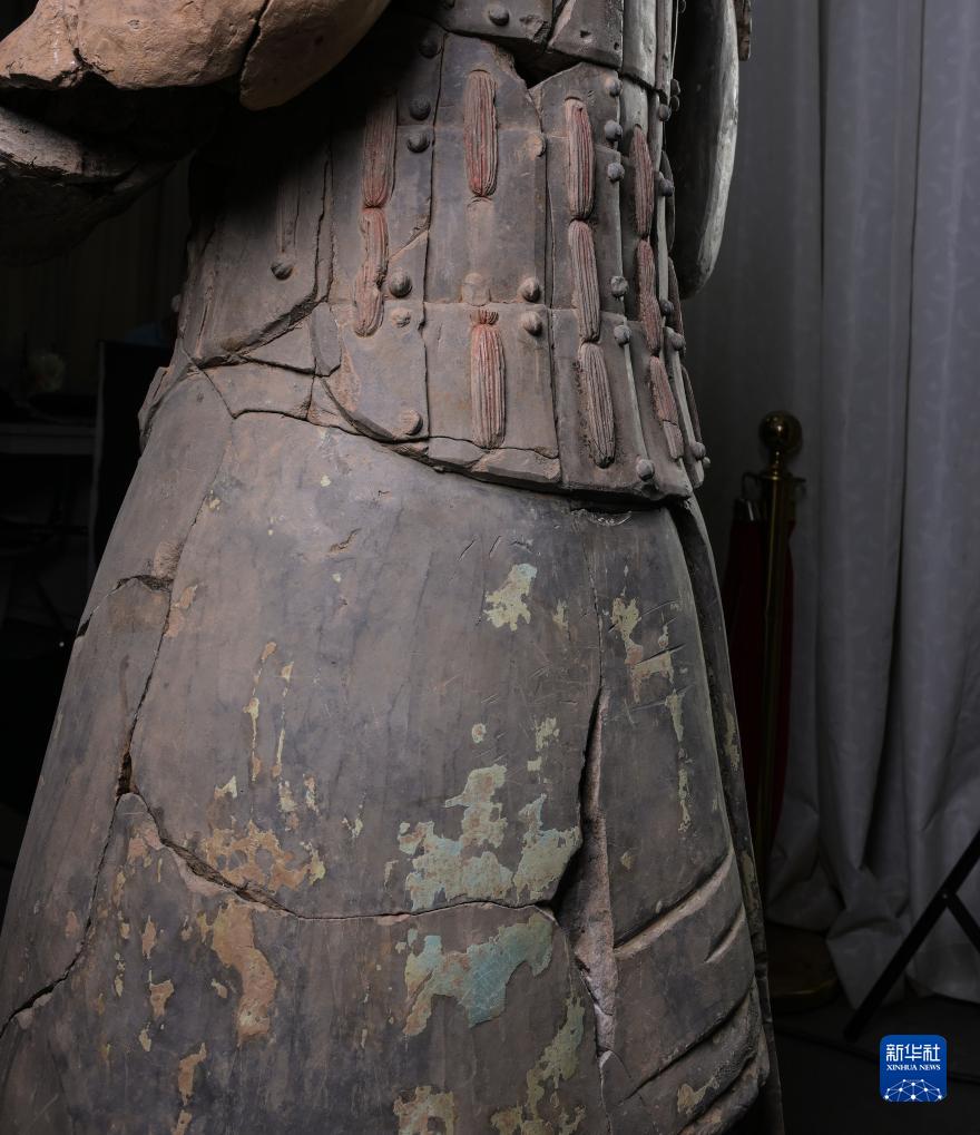 這是秦俑身上彩繪還原修復后的樣貌(8月23日攝)。