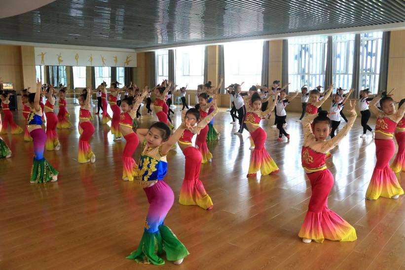 敦煌市西關(guān)小學(xué)舞蹈社團(tuán)的學(xué)生練習(xí)敦煌舞。張曉亮 攝