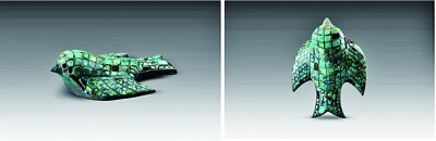 陜西省清澗縣寨溝商代遺址出土的鑲綠松石銅燕 中國社會科學(xué)院考古研究所供圖
