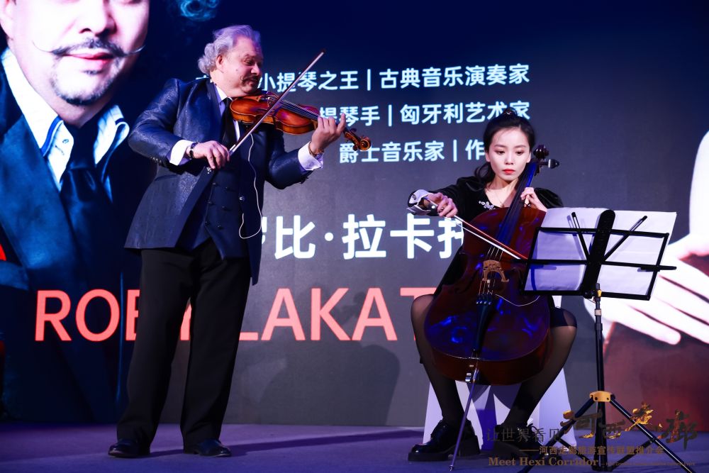 活動現(xiàn)場,張掖、武威、金昌、酒泉、嘉峪關5市分別展示當?shù)氐奈幕糜钨Y源,呈現(xiàn)地方特色節(jié)目,并與甘肅省簡牘博物館共同發(fā)布“通關簡牘”,發(fā)出邀請“讓世界走進河西走廊”。結合了甘肅特色的各類文藝表演、世界知名小提琴大師羅比·拉卡托斯以及羅馬尼亞藝術家們帶來的精彩節(jié)目也在活動現(xiàn)場演出。