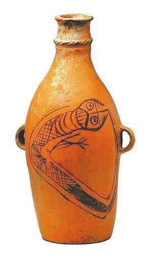 人面鯢紋魚(yú)陶瓶