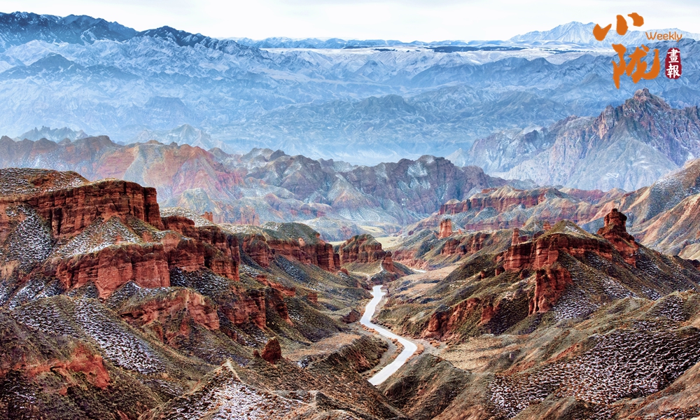 到了這里,色彩是讓人無法忘懷的記憶。大西北湛藍的晴空下,被白色覆蓋的紅色山體,變幻出多彩的顏色,氣勢磅礴。