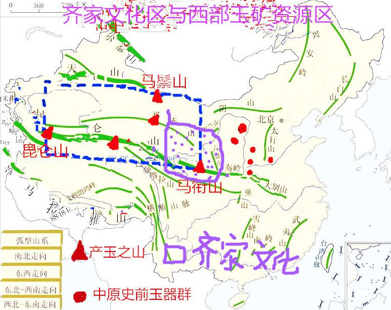 除肯定史前玉文化大傳統(tǒng)的價值之外,小說中的山羌、脩己、共工、三苗玉工、齊家人等人物形象也都與玉石有著密不可分的關(guān)系。山羌是來自鹽澤的牧羊女,居住在昆侖山巔的閬風(fēng)苑,“她頭發(fā)蓬松,頂戴玉勝,上身披虎皮褂,下身圍豹皮裙,三只兇猛青鳥在頭頂飛翔”,這一描述脫胎于《山海經(jīng)·西山經(jīng)》“又西三百五十里曰玉山,是西王母所居也。西王母其狀如人,豹尾虎齒而善哮,蓬發(fā)戴勝”的記載?!赌绿熳觽鳌犯斒隽酥苣峦踬e見西王母,西行至“群玉之山”攻取玉石的經(jīng)過。可見,小說中的牧羊女山羌是以西部出產(chǎn)美玉的昆侖山游牧部落首領(lǐng)西王母為原型的,作者還借她與脩己的交談交代了西玉東輸?shù)氖穼?。脩己手持黃玉制成的耒錘,“到過昆侖山、祁連山、馬鬃山、馬銜山、岷山等一百五十座產(chǎn)玉石的大山”,她的“朝山”走完了能夠搜集到玉石信息的所有山川、河流。這里“一百五十座”的確數(shù)源自《山海經(jīng)》記載的140多座玉山,正是作者對自己熟稔典籍的機(jī)巧化用。近幾年,考古、歷史和人類學(xué)者們通過多達(dá)數(shù)十次的實地考察,已大致勾勒出一個西起昆侖山,東到馬銜山,南抵祁連山,北達(dá)馬鬃山,大致為200萬平方公里的西部玉礦資源分布區(qū)。作為幾乎每一次考察活動的中堅力量,馮玉雷依據(jù)自己親歷所得的學(xué)術(shù)成果,在小說中得心應(yīng)手地虛構(gòu)了一個擁有辨玉秘術(shù)的西荒國,并巧妙地將“共工怒觸不周山”的神話改編為觸不周而化三危?!渡袝?middot;禹貢》載“黑水、西河惟雍州……三危既宅,三苗丕敘……厥貢惟球琳瑯軒”,“球琳瑯軒”四個斜玉旁的字從文獻(xiàn)角度提示了三危出玉的線索。2017年8月,玉帛之路考察團(tuán)還曾在敦煌三危山旱峽山谷發(fā)現(xiàn)了玉礦。三苗相傳是黃帝至堯舜時期分布在長江中游以南的氏族部落,與共工同屬“四罪”,《尚書·舜典》載舜“竄三苗于三危”,又《史記·五帝本紀(jì)》謂舜“遷三苗于三危,以變西戎”。馮玉雷創(chuàng)造性地將“竄三苗于三危”的文獻(xiàn)記錄與最新學(xué)術(shù)成果相結(jié)合,將三苗描繪為南方精通治玉工藝的部落,他們的西遷不是流放和懲罰,而是一次官方組織的大規(guī)??辈?、采玉活動,目的是為了整理和打磨西部玉石資源以為中原王朝的建立提供精神信仰和意識形態(tài)的依據(jù)。