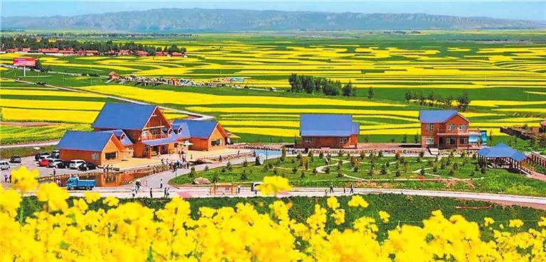 眺望遠(yuǎn)處,一座座大山傲然聳立在半空中,和云朵擦肩而過(guò),山上綠樹成蔭,空氣十分清新。最美的還是田野,爬上山頂往下看,除了空中飛行的鳥兒,一眼望不到邊的是綠油油的田野。227國(guó)道將村莊分割為東、西兩塊大小不等的地域,金黃的千畝油菜花海,夾雜著大麥、馬鈴薯的碧綠條塊,環(huán)繞在村莊四周。人工栽植的云杉松柏、紫葉矮櫻等苗木高低起伏地相擁在家家戶戶的房前屋后,坐落在油菜花海和綠樹環(huán)繞中的村莊與小康農(nóng)舍,恰似航船一樣在金黃的花海中漂浮升沉著,煞是美麗。正是這宜業(yè)宜居、可憩可游、美麗愜意的鄉(xiāng)村生活環(huán)境,讓炒面莊贏得“美麗鄉(xiāng)村”示范村和“環(huán)境整潔村”的美譽(yù)。