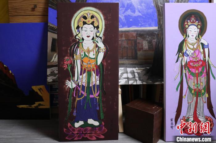 北京外國語大學(xué)藝術(shù)研究院院長寧強以敦煌莫高窟壁畫為靈感創(chuàng)作的繪畫作品?!⌒煅┈?nbsp;攝