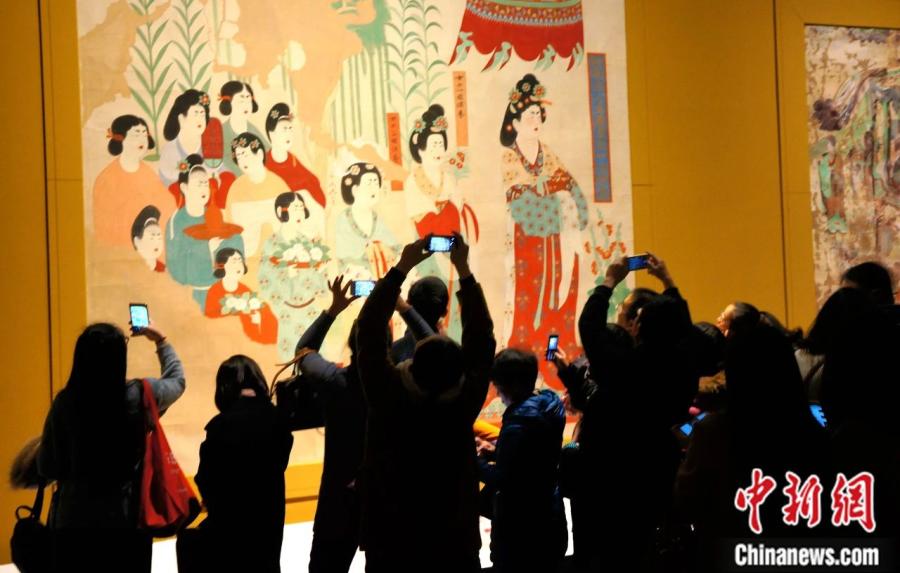 2017年1月,觀眾在成都博物館參觀“絲路之魂·敦煌藝術(shù)大展暨天府之國與絲綢之路文物特展”。樊甲山 攝