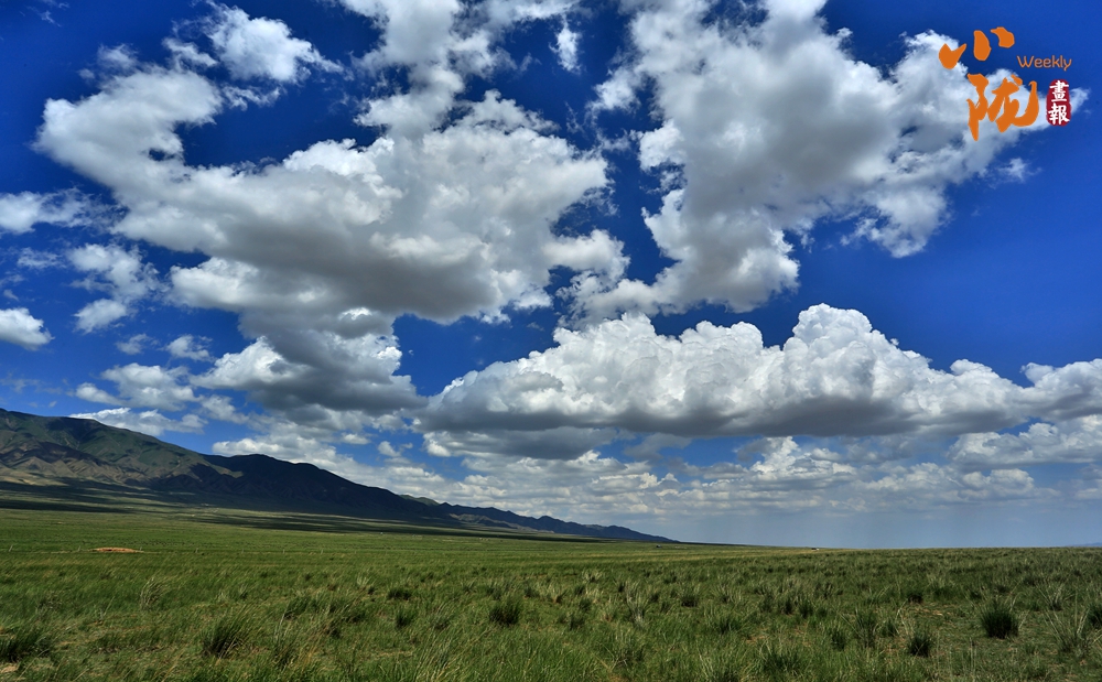 遠(yuǎn)處白云悠悠,百萬(wàn)畝草原一望無(wú)垠,羊群點(diǎn)綴的大草原和那殘存的烽火臺(tái)相映成趣,呈現(xiàn)出一幅綠意盎然的詩(shī)意畫卷。