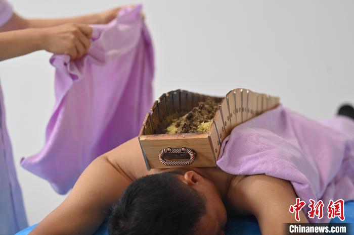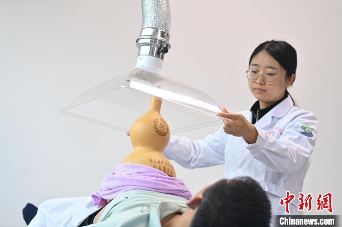 7月16日,甘肅省平?jīng)鍪徐`臺(tái)縣皇甫謐針灸康養(yǎng)館內(nèi),工作人員對(duì)患者進(jìn)行葫蘆灸治療。2006年,靈臺(tái)皇甫謐針灸術(shù)入選第一批甘肅省非物質(zhì)文化遺產(chǎn)名錄。靈臺(tái)作為皇甫謐故里,當(dāng)?shù)孛癖姺浅UJ(rèn)可中醫(yī)康養(yǎng),針灸、拔火罐、推拿、葫蘆灸、火龍灸(督脈灸)等中醫(yī)特色療法受到了很多人的青睞,當(dāng)?shù)毓俜揭餐ㄟ^(guò)舉辦大型節(jié)會(huì)等助推中醫(yī)康養(yǎng)產(chǎn)業(yè)發(fā)展。 皇甫謐是針灸醫(yī)學(xué)鼻祖,其《針灸甲乙經(jīng)》已在多個(gè)國(guó)家被廣泛傳播應(yīng)用。中新社記者 李亞龍 攝