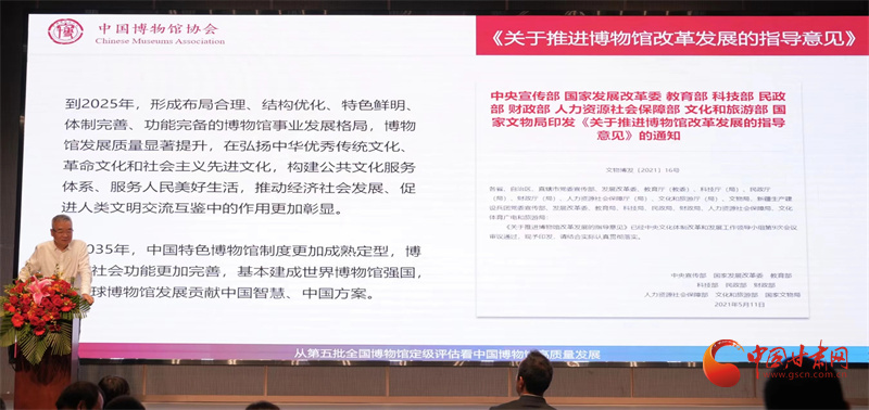 交流會上,中國博物館協(xié)會理事長劉曙光作了《從第五批全國博物館定級評估看中國博物館高質(zhì)量發(fā)展》的主旨發(fā)言,中央廣播電視總臺《簡牘探中華》節(jié)目總導(dǎo)演馬洪濤,中國建筑西北設(shè)計研究院有限公司副總經(jīng)理靳江,深圳市藝博堂數(shù)字文化科技集團有限公司總經(jīng)理鄭洵,甘肅簡牘博物館副館長楊眉分別進行了主題分享,為甘肅省博物館事業(yè)的高質(zhì)量發(fā)展建言獻策。