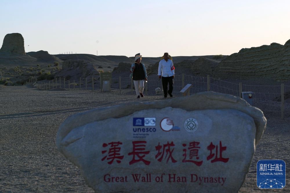 玉門關(guān)外,大漠戈壁,漢長(zhǎng)城遺址巍然屹立,訴說(shuō)著歷史上的邊塞風(fēng)云和絲路滄桑。