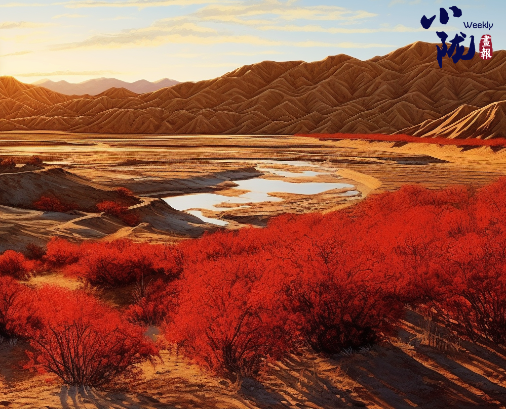 這里氣候干燥,降水稀少,高大的植物難以生存。只有紅柳深扎根須,迎著風(fēng)沙,頑強(qiáng)生長。遠(yuǎn)遠(yuǎn)望去,密集的紅柳連成一片,把戈壁染成了紅色。