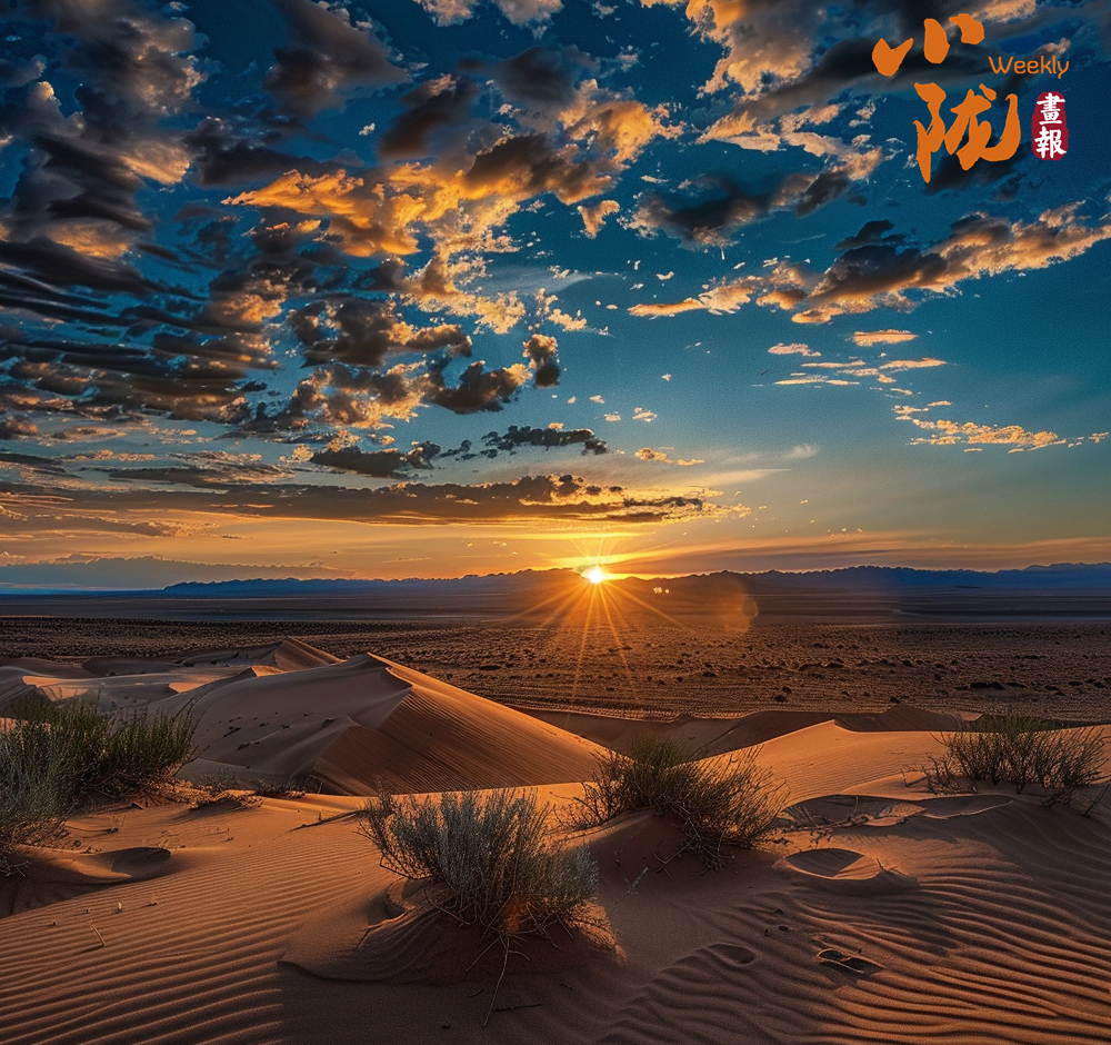黃昏時分,金色的夕陽醉倒在一望無垠的黃沙中,落日的光輝給綿延起伏的沙丘,又鍍上一層金色,更顯雄渾壯闊,旅人在沙海中獨(dú)行,自由又浪漫。