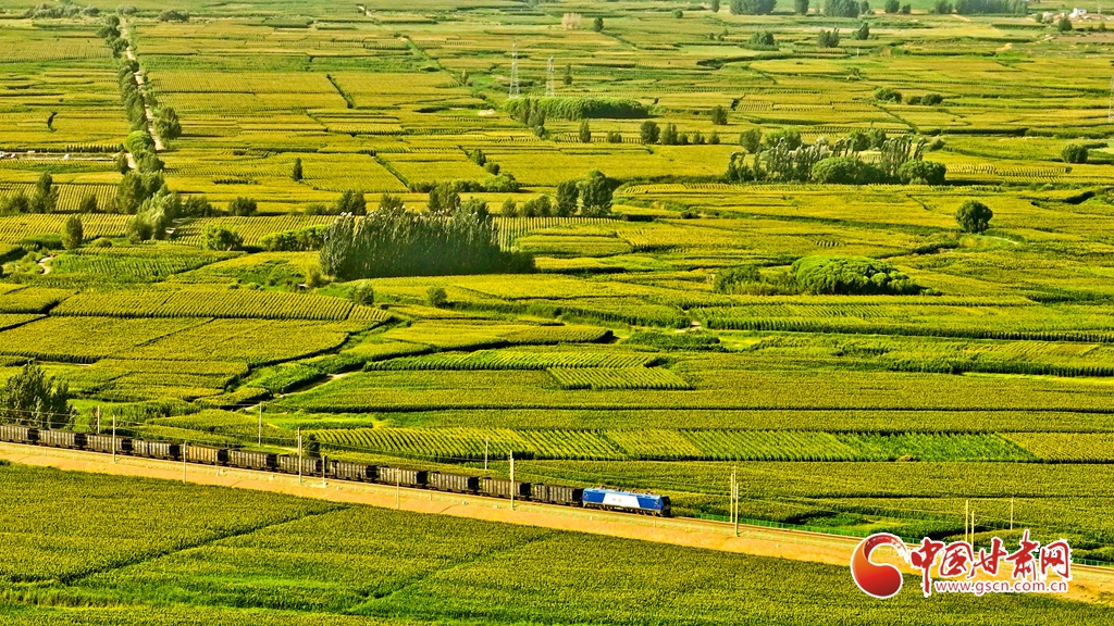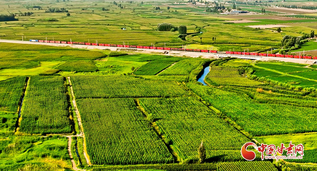 7月17日清晨,蘭新鐵路大動脈和S237(蒙甘——青海)一級公路上,一列列火車、一輛輛汽車從甘肅省張掖市甘州區(qū)烏江鎮(zhèn)萬畝制種玉米基地中呼嘯而過。