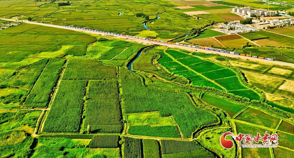 盛夏時節(jié),位于祁連山下的甘肅省張掖市甘州區(qū)烏江鎮(zhèn)萬畝即將收獲的制種玉米生長旺盛,宛若鋪了一層綠色的“巨毯”。綠油油的供港蔬菜基地上,種植農戶們正忙碌采摘。田間林木,穿境而過的蘭新鐵路大動脈和S237(蒙甘--青海)一級公路上,一列列火車、一輛輛汽車疾馳,勾勒出一幅幅美麗的田園生態(tài)畫卷。