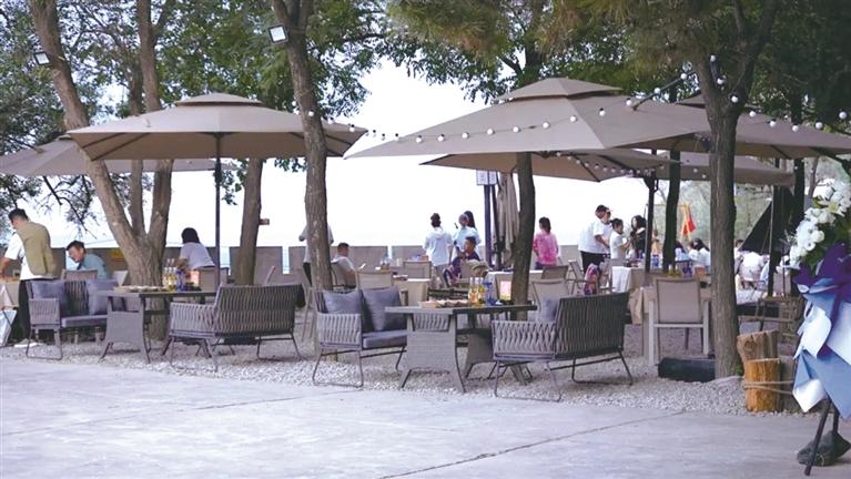 除了優(yōu)美的環(huán)境外,園區(qū)內(nèi)文旅業(yè)態(tài)也十分豐富,有望河樓、紫云樓、怡翠亭三處高端餐飲,主打餐飲品牌“如意樂宴”,共有5個(gè)各具特色的主題包廂和1個(gè)文創(chuàng)餐廳,可以提供環(huán)境幽雅的高端私享空間,適合商務(wù)宴請(qǐng)、親朋聚會(huì)。望河樓內(nèi)還有露天火鍋和咖啡酒吧,帶來“白咖夜酒”的浪漫體驗(yàn)。