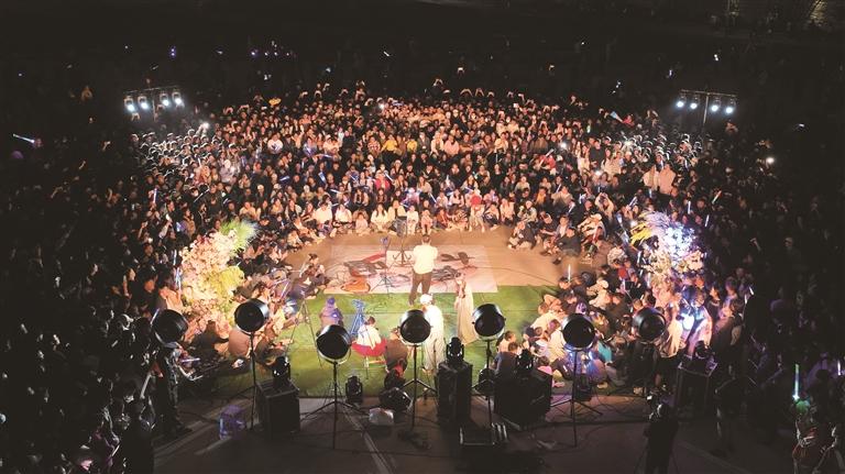 今年4月以來,萬人蘭州“黃河大合唱”火爆出圈,在朋友圈和各大視頻平臺(tái)廣為傳播,與之相關(guān)的“蘭州人在黃河邊自己開演唱會(huì)”“蘭州黃河邊大合唱”“這么熱鬧的蘭州你還不來嗎”等話題也紛紛登上各大社交媒體的熱搜榜單。一時(shí)間,這項(xiàng)活動(dòng)以“頂流”的吸引力召喚著全國各地的網(wǎng)友來到蘭州,感受一場(chǎng)酣暢淋漓的萬人大合唱。專程趕來參加活動(dòng)的大學(xué)生小胡感慨地說:“這是燈光,是希望,是青春,是大西北的浪漫,是蘭州,是黃河之濱的浪漫。”截至目前,“黃河大合唱”活動(dòng)已在三縣五區(qū)多地舉辦,演出共計(jì)近百場(chǎng),累計(jì)參與游客市民50余萬人。