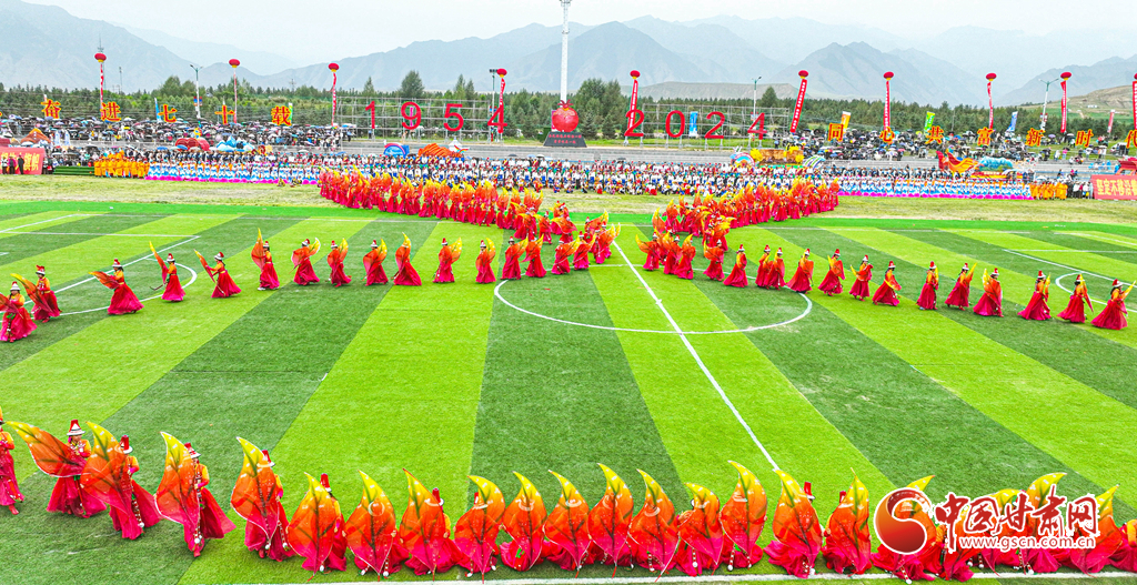 8月13日,甘肅省張掖市肅南裕固族自治縣萬名群眾身著節(jié)日的盛裝,齊聚在索朗格賽馬場上,展開主題為“感恩奮進七十載·同心共富新時代”的歌舞表演,感謝偉大的中國共產(chǎn)黨,謳歌美好的新生活。