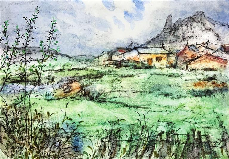 平常在畫室里畫畫時,喜歡用淡淡的墨色體會與宣紙碰撞所散發(fā)出的獨特墨韻。但是描摹西部,需要更加深厚、絢爛、豐富的色彩,才能表達我們的感受,寄予我們對這片土地的深情。離開故土,踏向遠方,那份對家鄉(xiāng)的無盡思念和深深眷戀,是每一位游子心中難以言喻的情感,如同無形的紐帶,將我們與故鄉(xiāng)緊緊相連。這種情感,如同西北高原上那連綿不絕的山脈,既遙遠又清晰,既冷峻又溫暖。